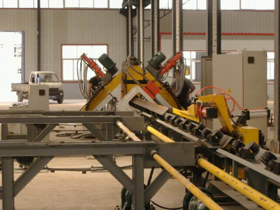 該機(jī)為龍門式五缸壓力機(jī),可利用前后管支架,對(duì)鋼管進(jìn)行矯直作業(yè),一機(jī)兩用。