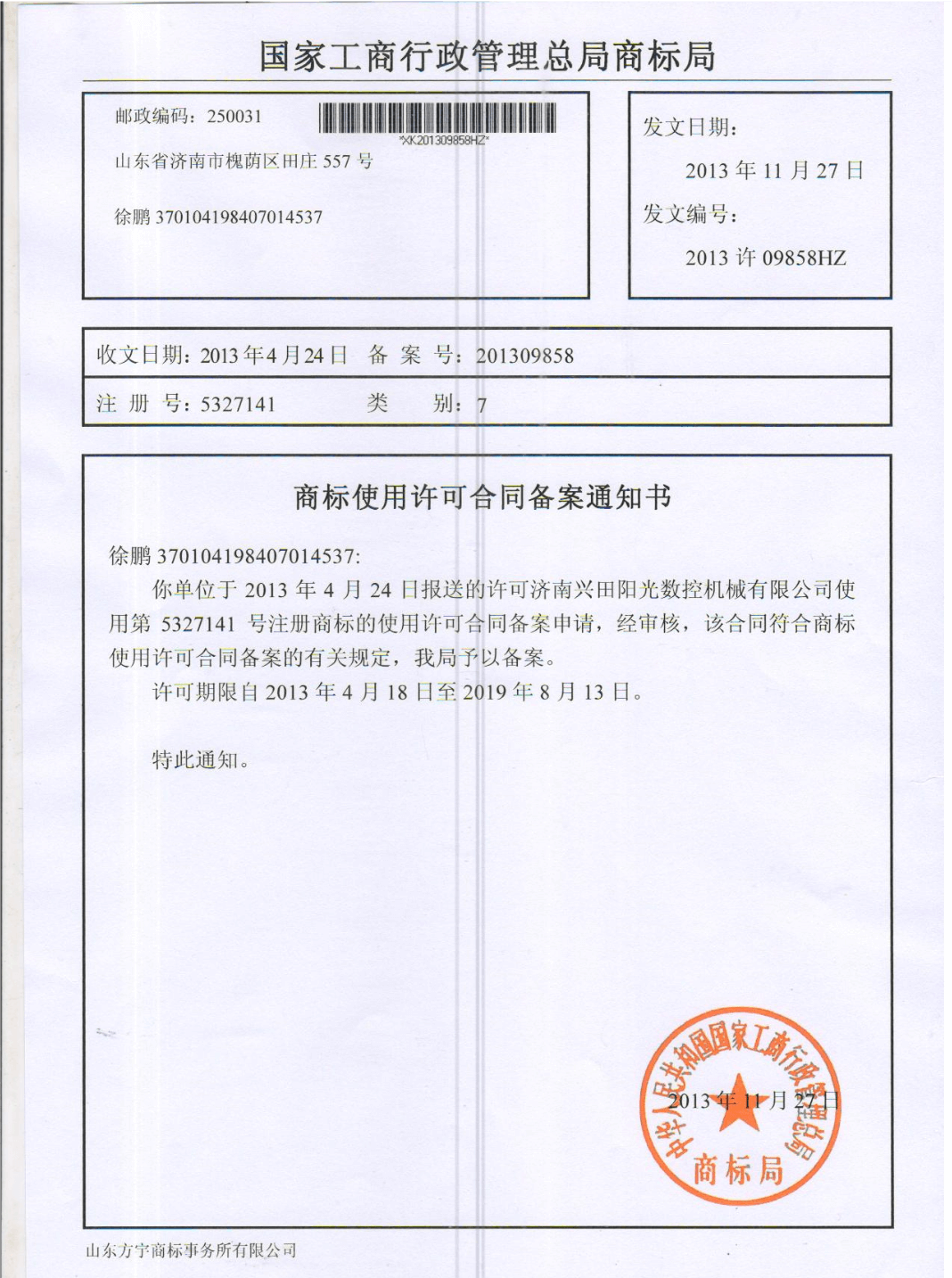 山東興田陽(yáng)光智能裝備股份有限公司,原名濟(jì)南興田陽(yáng)光數(shù)控機(jī)械有限公司,齊魯股權(quán)交易中心掛牌企業(yè)(股權(quán)代碼及簡(jiǎn)稱:100817 興田智能),是一家集產(chǎn)品開(kāi)發(fā)、生產(chǎn)、銷售為一體的新型現(xiàn)代民營(yíng)股份制并且具有自主進(jìn)出口經(jīng)營(yíng)權(quán)的山東省高新技術(shù)企業(yè)。公司坐落在美麗的泉城西部,西靠玉清湖觀光旅游風(fēng)景區(qū),東鄰京滬高鐵、京福高速公路及山東現(xiàn)代化國(guó)際物流中心,四面綠樹(shù)成蔭,廠內(nèi)花團(tuán)錦簇,交通便利,環(huán)境幽雅。公司主要從事鐵塔、管塔、鋼結(jié)構(gòu)、電力鐵附件等行業(yè)型材的智能制造類數(shù)控加工設(shè)備和其他非標(biāo)準(zhǔn)數(shù)控設(shè)備智的研發(fā)、生產(chǎn)和銷售業(yè)務(wù)……